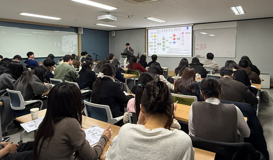 이날 발표는 외용제와 한방약을 주제로 진행됐는데, 심소연 약사가 '여드름 외용제 총정리 및 약국에서의 PDRN 활용'을 주제로 체계적인 정리와 함께 상담 접근법을 공유했다.