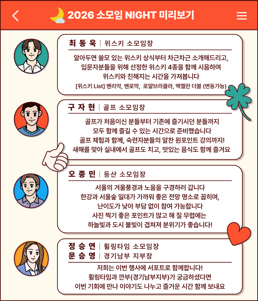 이번 소모임NIGHT를 대표하는 소모임은