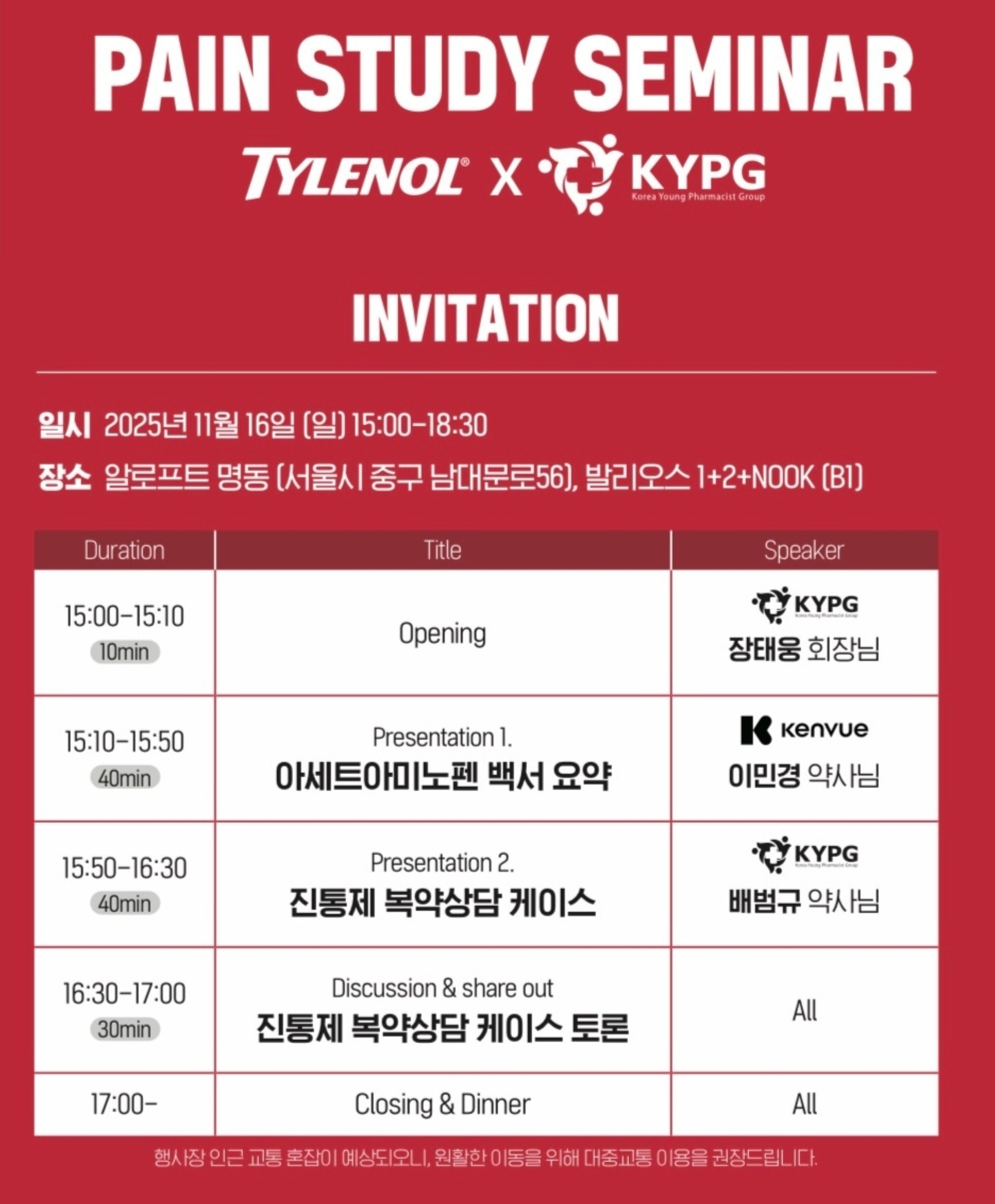 Pain Study Seminar with Tylenol & KYPG가 열립니다. 🙌